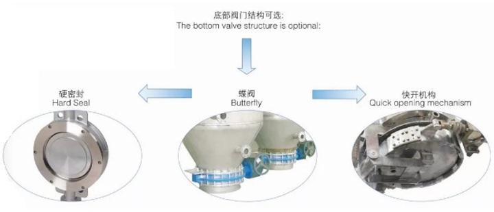 濾餅吹干后,啟動振動器,濾葉片上的濾餅通過底部蝶閥自動落下。如果濾餅吹干過程操作的很好,開啟振動器10S內即可落下全部濾餅。在過濾機底部安裝一個絞龍,有利于輸送濾餅。