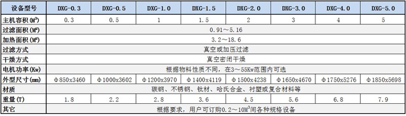 筒錐式反應(yīng)過濾干燥一體機(jī) 技術(shù)參數(shù)表